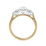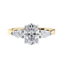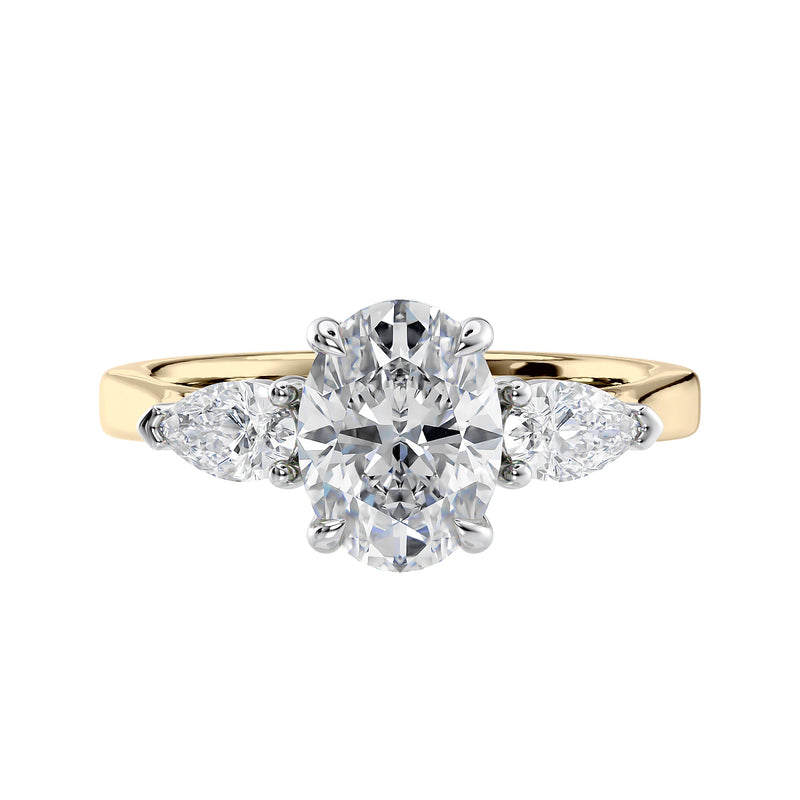 Oval 3 stone diamond engagement ring with pear cut sides.