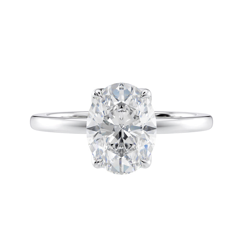 Solitaire diamond engagement ring featuring an oval centre stone.