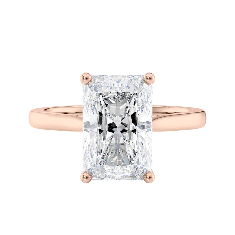 Radiant cut solitaire diamond engagement ring.