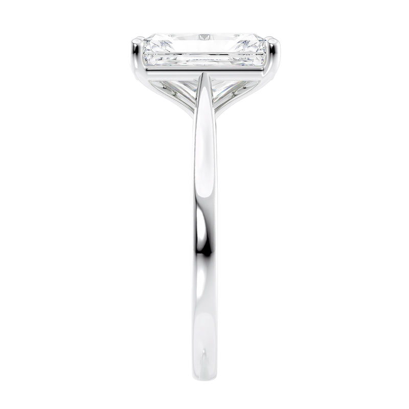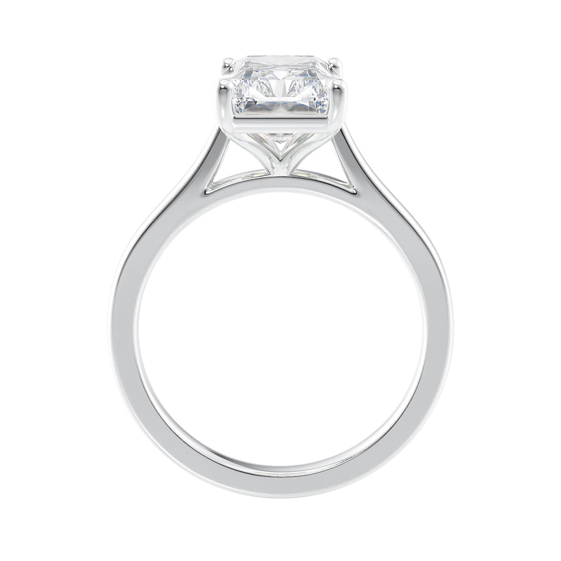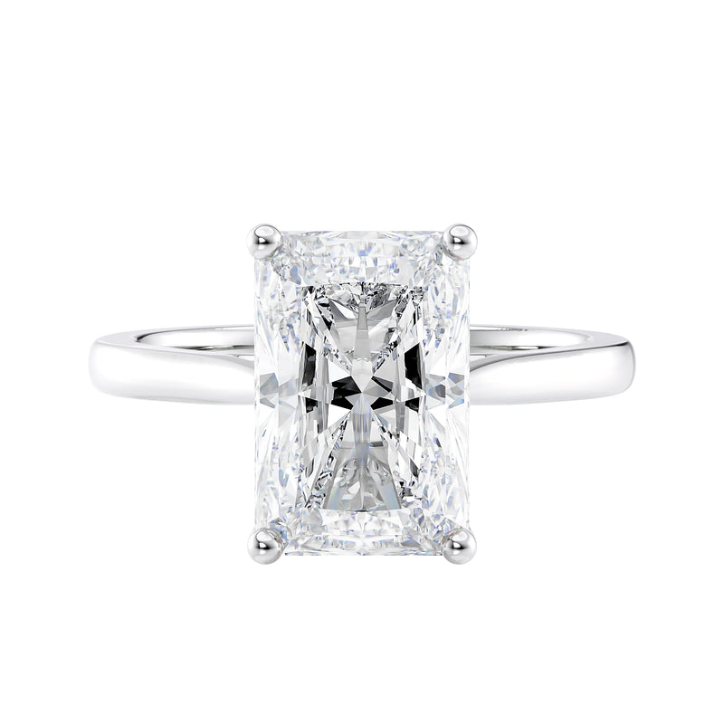 Radiant cut solitaire diamond engagement ring.
